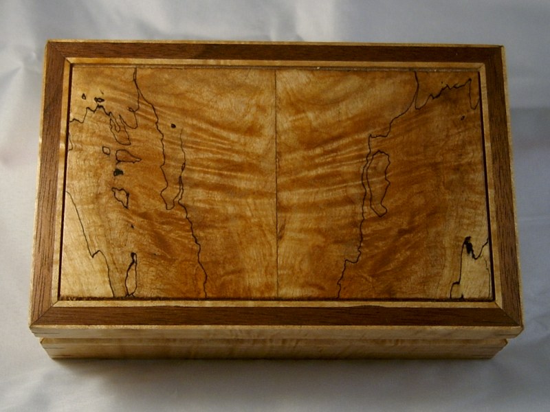 box is made from curly Big Leaf Maple with spalted western Big Leaf Maple