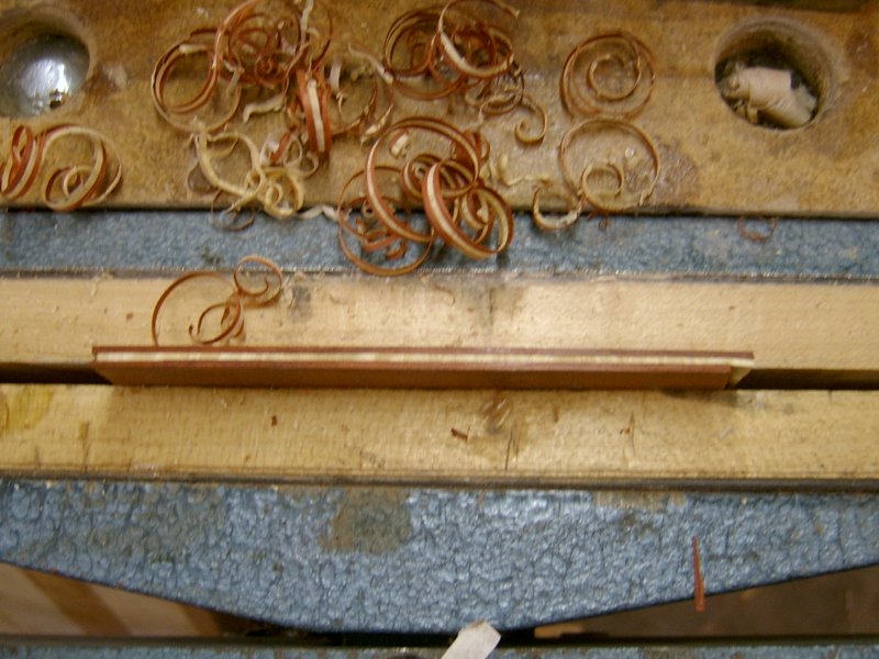 | Here I show that it needs to thinned down a bit. I do this with a drum sander. I find a hand-plane is tough for me to use on this thin of material. | |